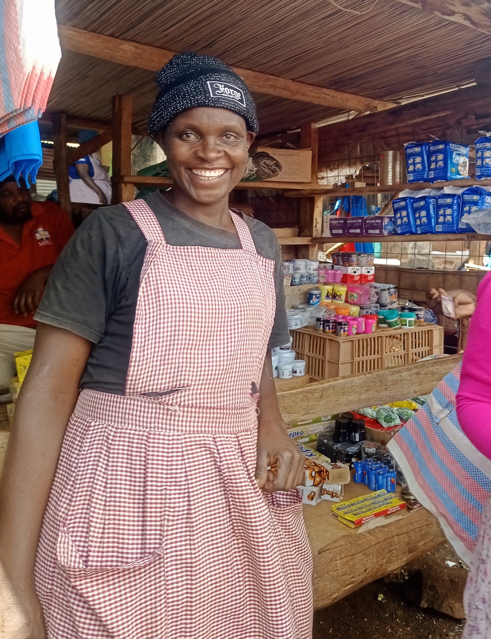 Melvin is a mother of five and member of the Tambua Sifa Women’s Group, a women’s group that received a grant from RSWR in 2023. Melvin operates a small market kiosk that moves from village to village. Through Melvin’s women’s group, she gained access to training in financial management and record-keeping. The flexibility of her mobile stall allows her to bring fresh goods to rural communities while balancing family life. “My children see me working hard, and they see how women can support each other,” she says. Her story reflects the practical creativity and community care that define RSWR’s approach.
